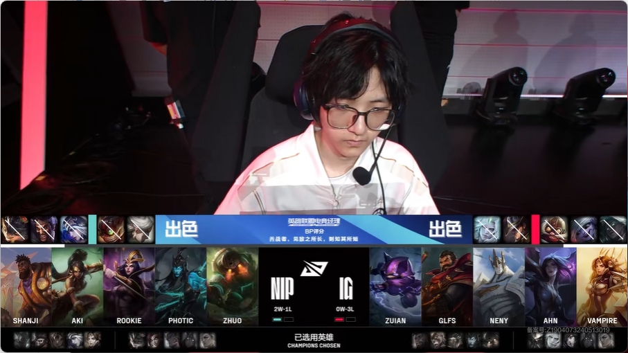 At 14 minutes, a teamfight erupted. IG focused their firepower and killed Leona first, but despite Iron Man being surrounded by IG in his ultimate, IG's decision-making was not coordinated and their composition was severely disjointed. NIP took advantage of this and turned the fight around, trading 1 for 3 and successfully taking the Vanguard.