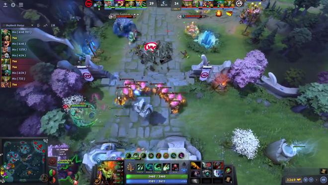 首局比賽,WG在天輝方,nouns在夜魘方。陣容方面,WG點出了美杜莎、獸、狼人、老奶奶、發條,nouns則是拿到螞蟻、小小、先知、大樹、沉默。整體來看,WG拿出美杜莎狼人的中期推進陣容,但美杜莎在當前版本里非常弱勢,目前各大賽區的隊伍選出美杜莎很難拿下勝利。而nouns則是選出一套前期節奏陣容,螞蟻先知掃圖壓制能力很強,沉默的存在對于WG核心以及靠大招吃飯的老奶奶都是很大的威脅。開局前幾分鐘雙方和平發育相安無事,直到5分半,獸一波上路支援成功擊殺沉默拿到一血。對線期雙方節奏較為平緩,但nouns三路核心發育更好,nouns在10分鐘取得近3000的經濟優勢。