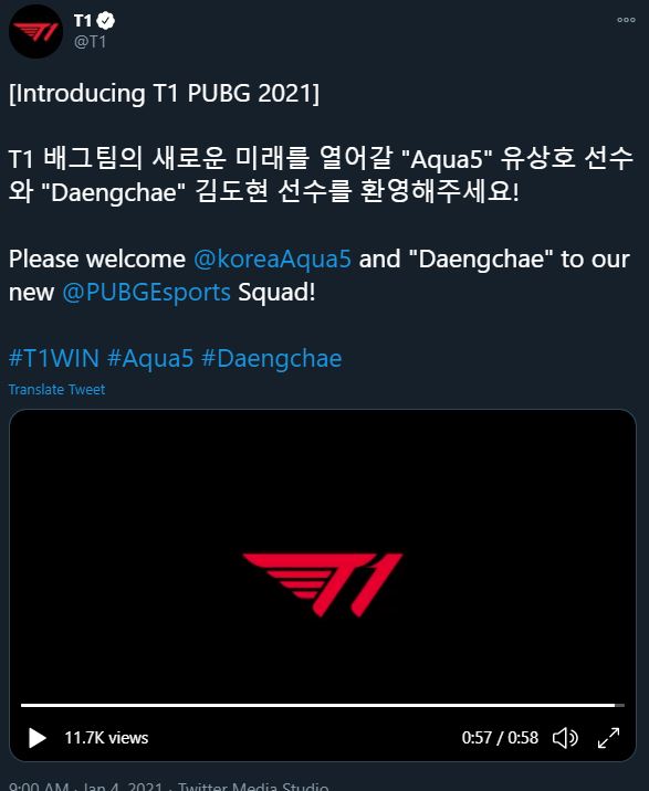 韓國戰隊T1昨日官宣,新隊員Aqua5和Daengchae正式加入。