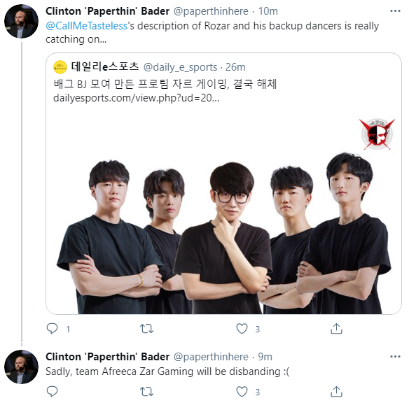 外媒報道:曾在APL、PWS季前賽曇花一現的Afreeca Azr Gaming今天正式宣布與合作商合作終止,PUBG隊伍正式解散。